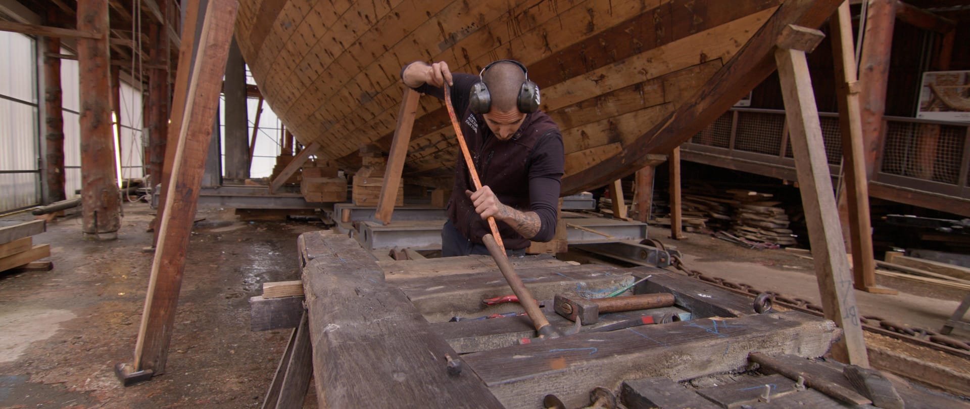 La nueva puerta será construida a mano con madera de roble proveniente de Sakana, cargada de significado y profundamente vinculada al territorio. La misma madera se utiliza también para la construcción de la nao San Juan, réplica de un ballenero del siglo XVI, lo que aporta al proyecto una conexión directa con otras formas de preservación del patrimonio y del saber hacer tradicional.